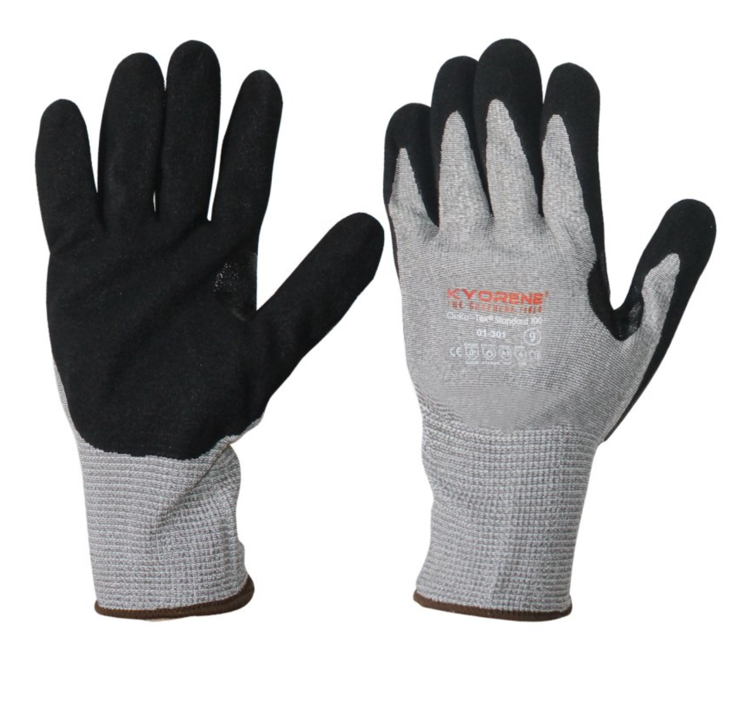 Guantes resistentes al corte KYORENE liner 13G, dorso ventilado, puño elaborado en punto, revestimiento de nitrilo – Características: resistente – Puntos fuertes: comodidad, agarre, sensibilidad, precisión, resistencia al corte – Campos de uso: manipulación y montaje de artículos cortantes, secos o ligeramente aceitosos