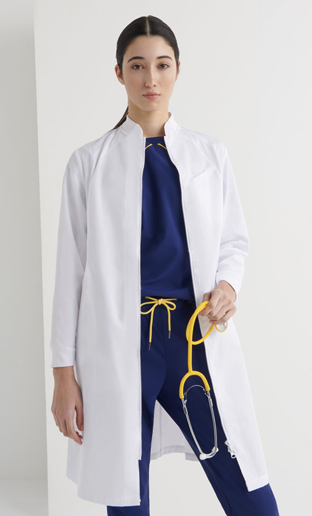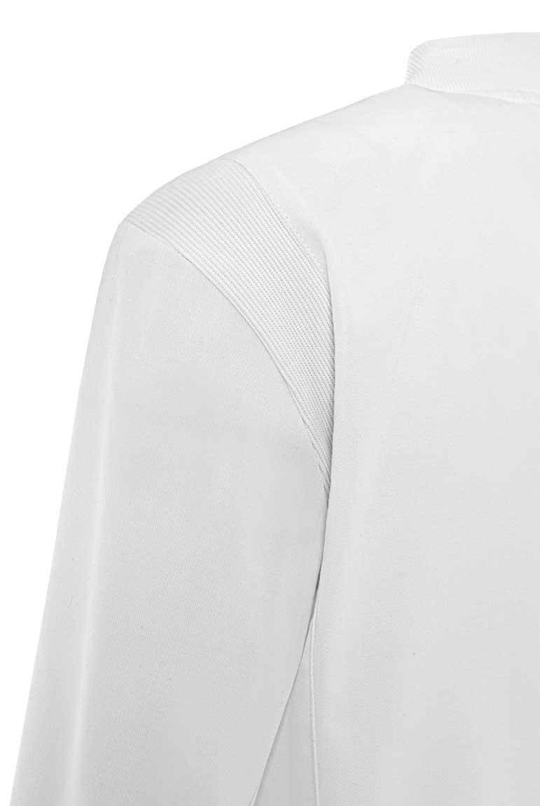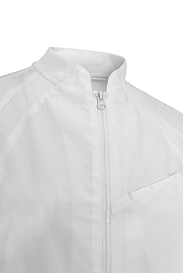 La combinación de tejidos en zonas estratégicas ofrece elasticidad y mejora la libertad de movimientos además de otorgar a esta bata una estética moderna y diferenciadora. El tejido rib también en cuello y puños asegura una sensación agradable de suavidad y elasticidad. La prenda se cierra con una cremallera inyectada bidireccional. Un diseño innovador para un clásico del uniforme sanitario.