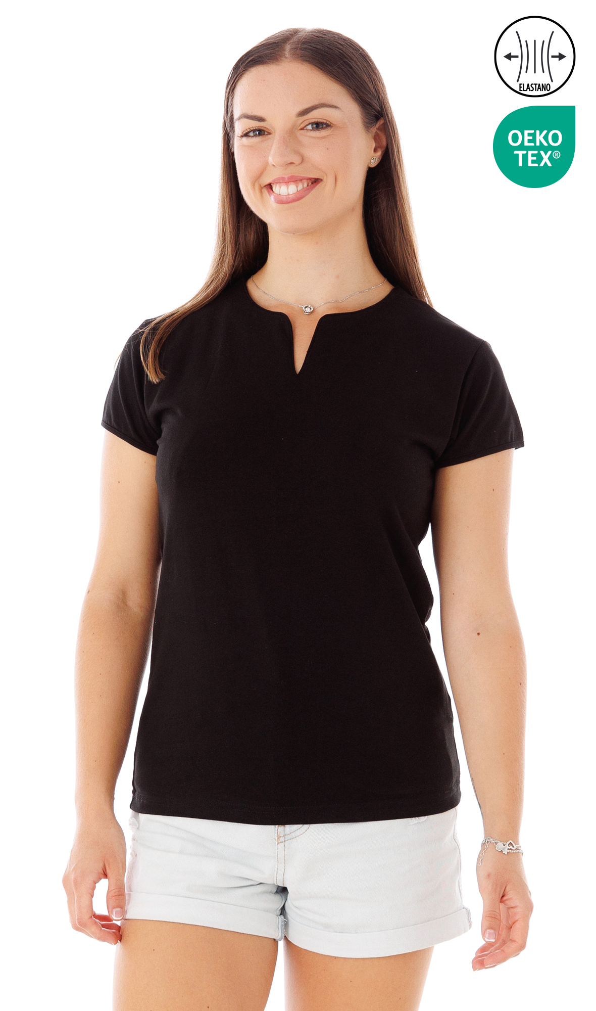 95% algodón 5% elastano, 190 gr, punto liso Corte entallado