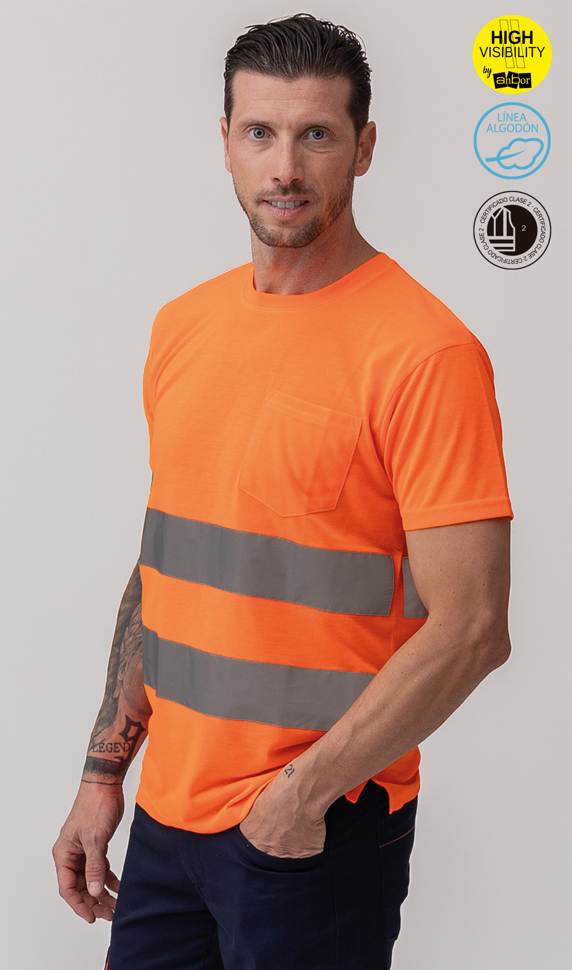 2 bandas reflectantes cosidas en torso de 7 cm