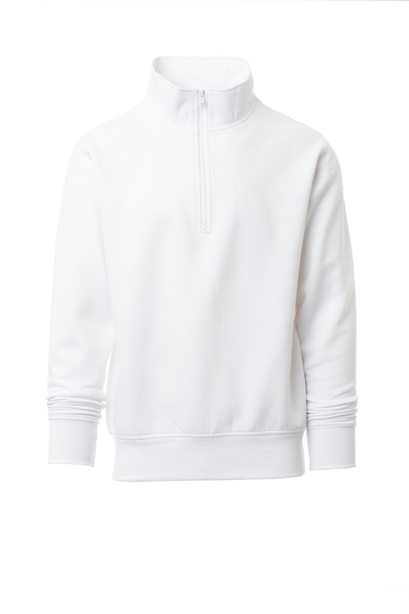 Sudadera para hombre, con media cremallera de plástico a juego y cursor metálico, manga simple, puños y cintura de canalé elástico, costuras reforzadas.
