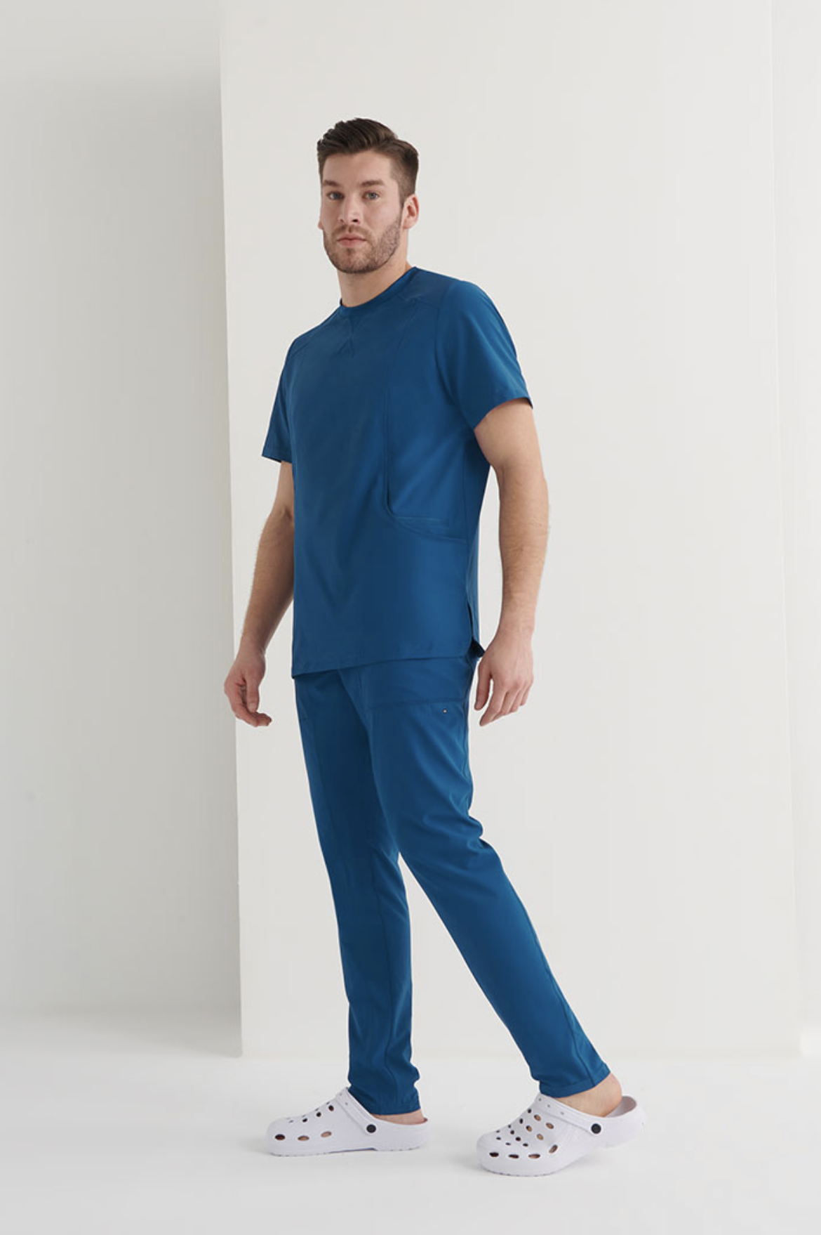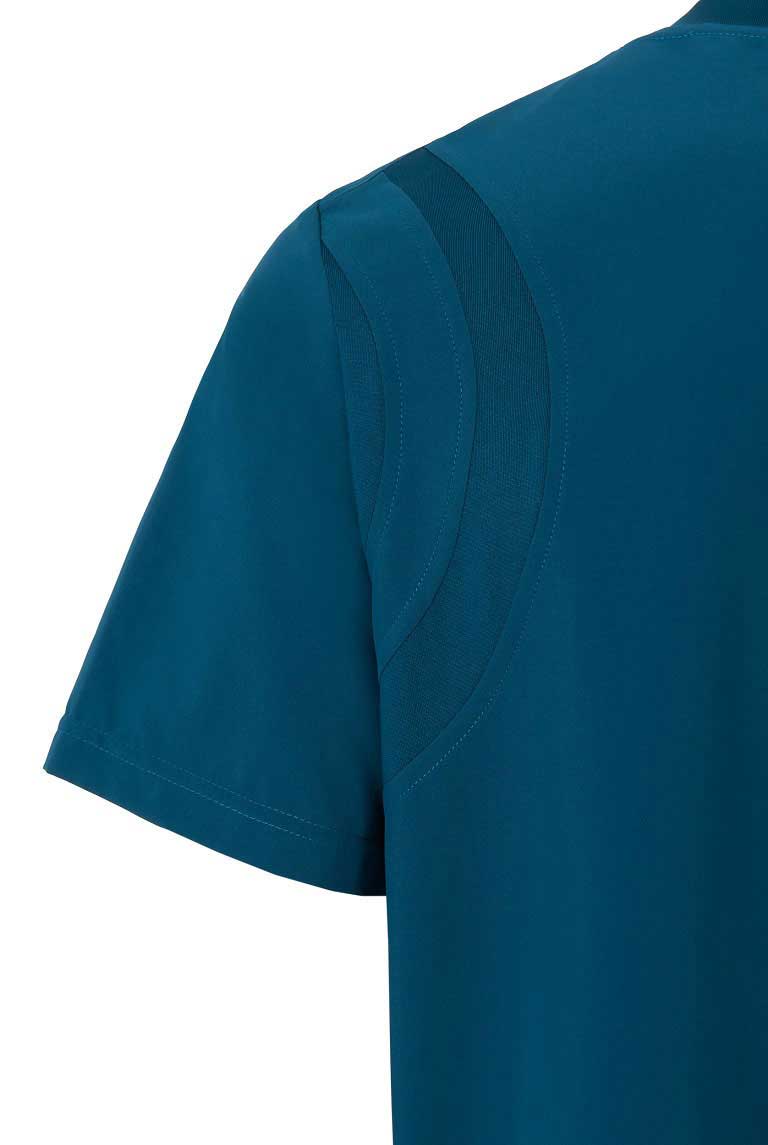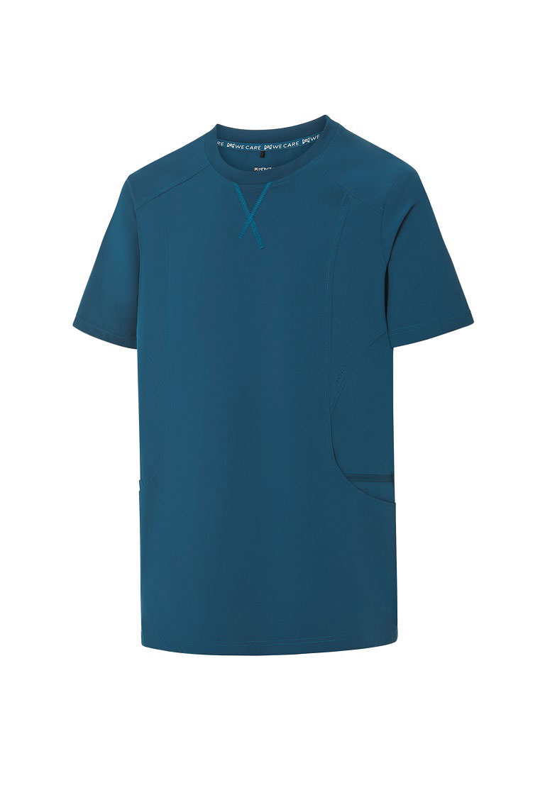 Un diseño cómodo adaptado a las necesidades de funcionalidad del profesional sanitario.  Este modelo incorpora piezas de punto rib en la espalda, lo que le aporta elasticidad y facilita los movimientos, eso sumado a que la prenda está confeccionada con un tejido especialmente elástico, suave, ligero, transpirable y de fácil cuidado.