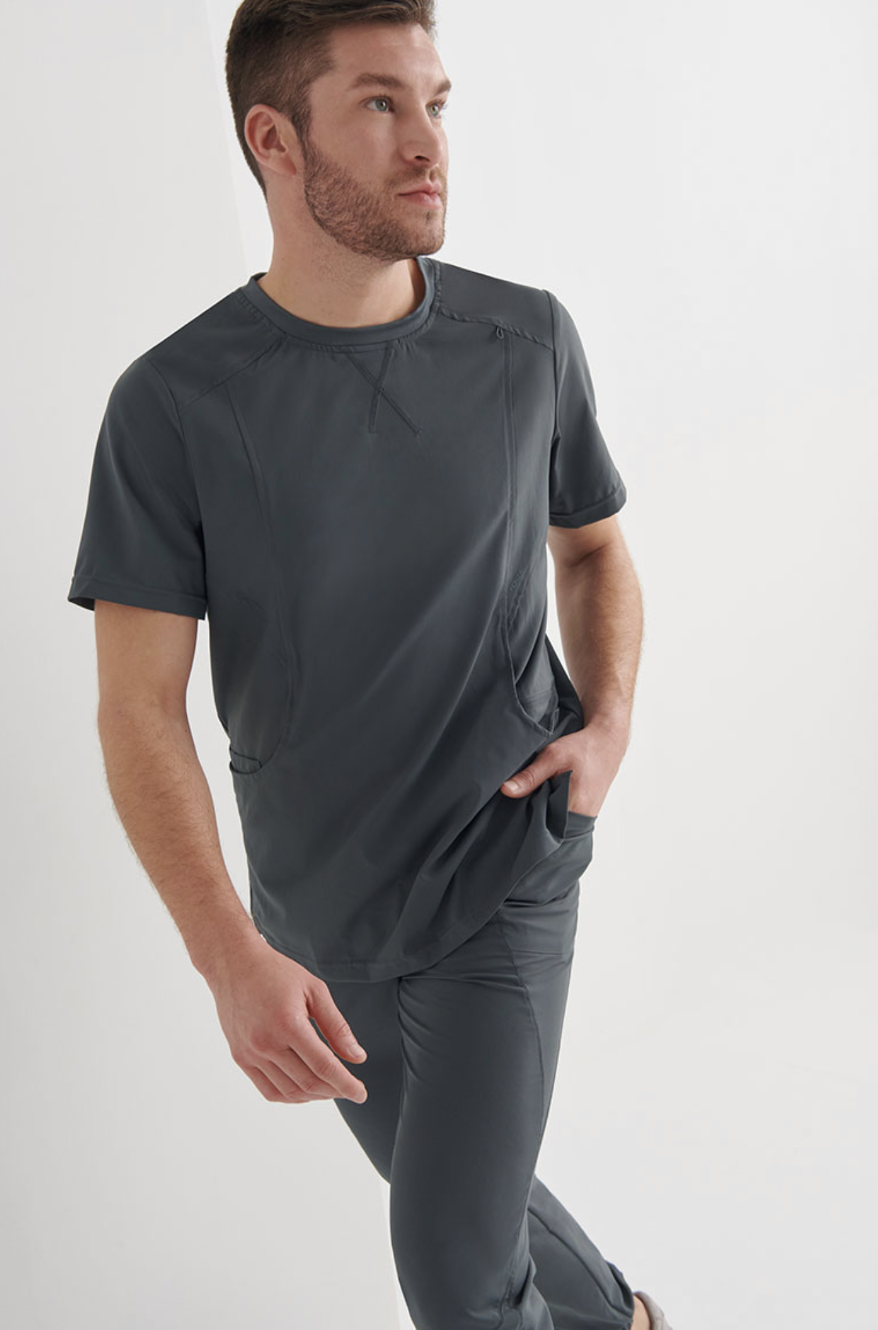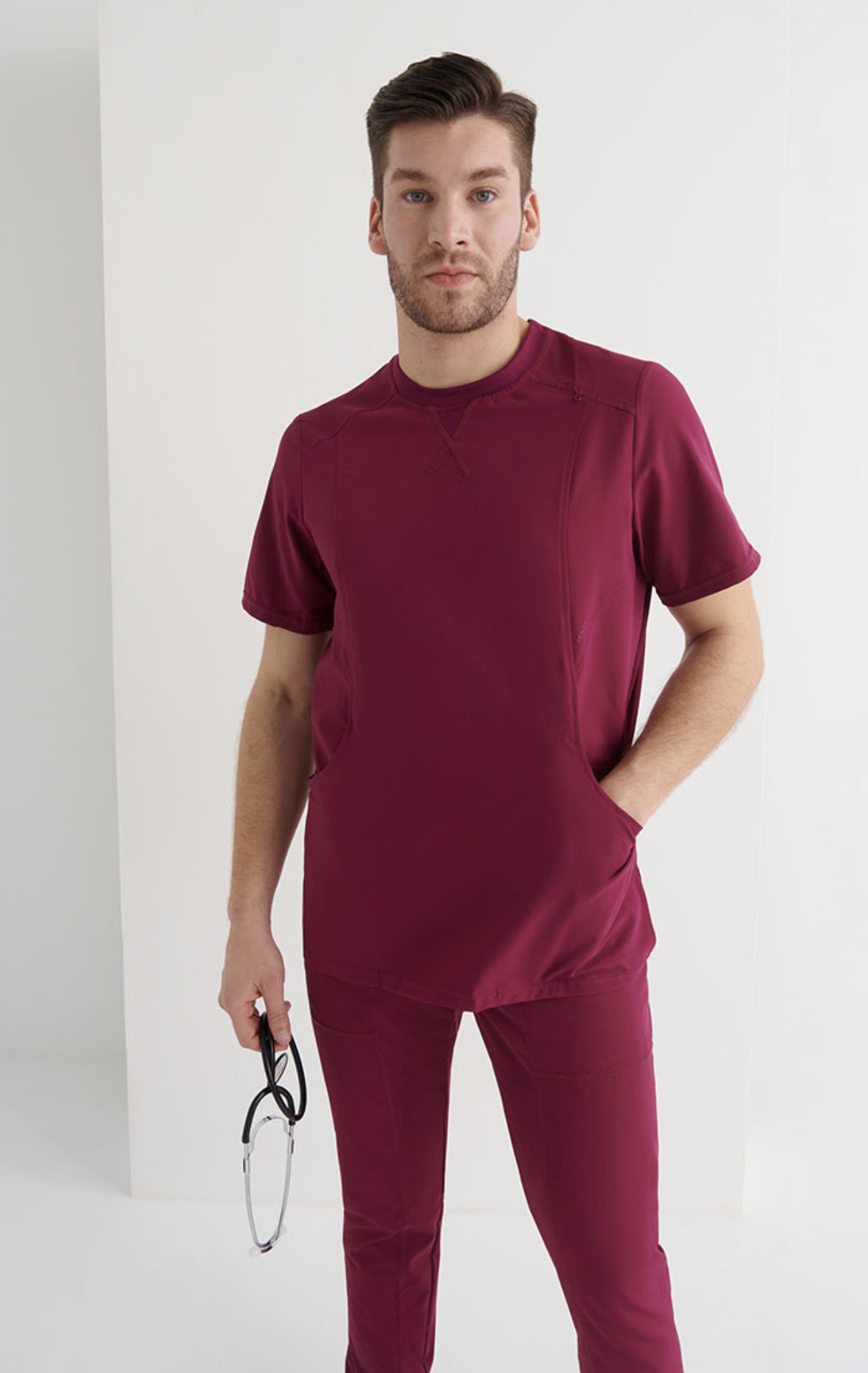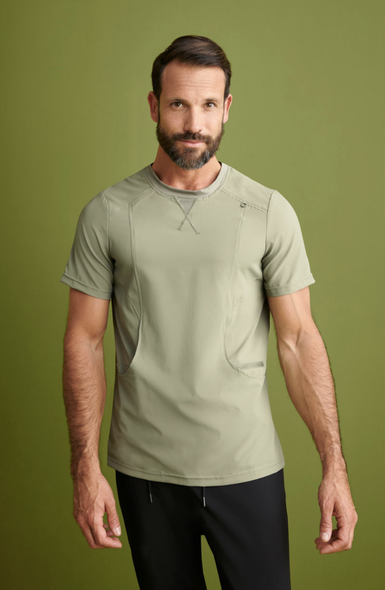 Un diseño cómodo adaptado a las necesidades de funcionalidad del profesional sanitario.  Este modelo incorpora piezas de punto rib en la espalda, lo que le aporta elasticidad y facilita los movimientos, eso sumado a que la prenda está confeccionada con un tejido especialmente elástico, suave, ligero, transpirable y de fácil cuidado.