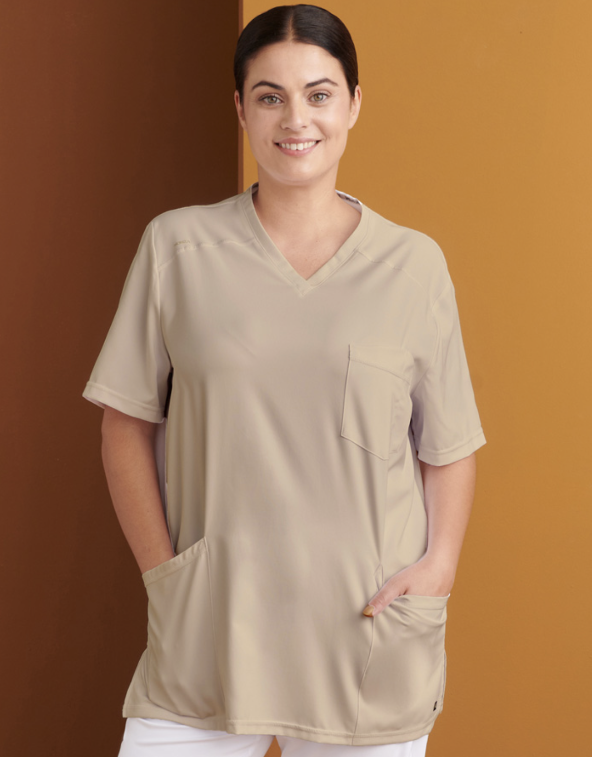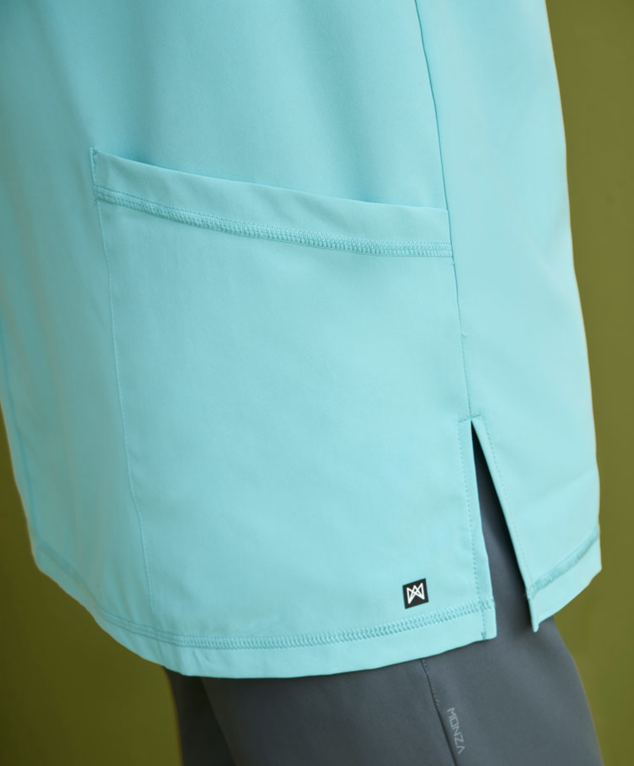 Esta casaca actualiza una pieza esencial del uniforme sanitario en una versión de inspiración deportiva sin abandonar los códigos de funcionalidad y comodidad que requiere el profesional. Su tejido elástico, suave y ligero, los bolsos compartimentados o el acabado antiestático, son muestra del confort y carácter funcional que ofrece.