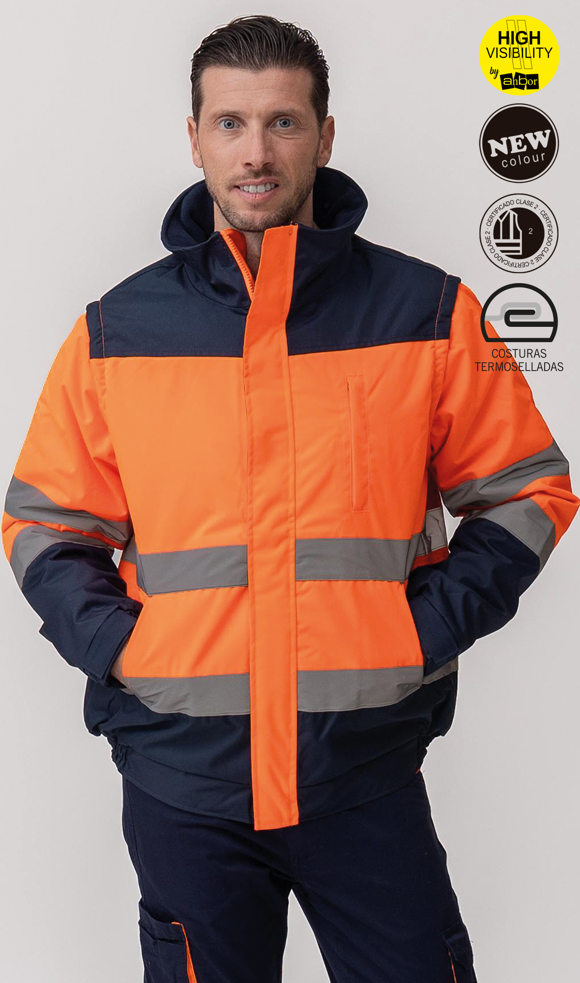2 bandas reflectantes cosidas en torso y mangas