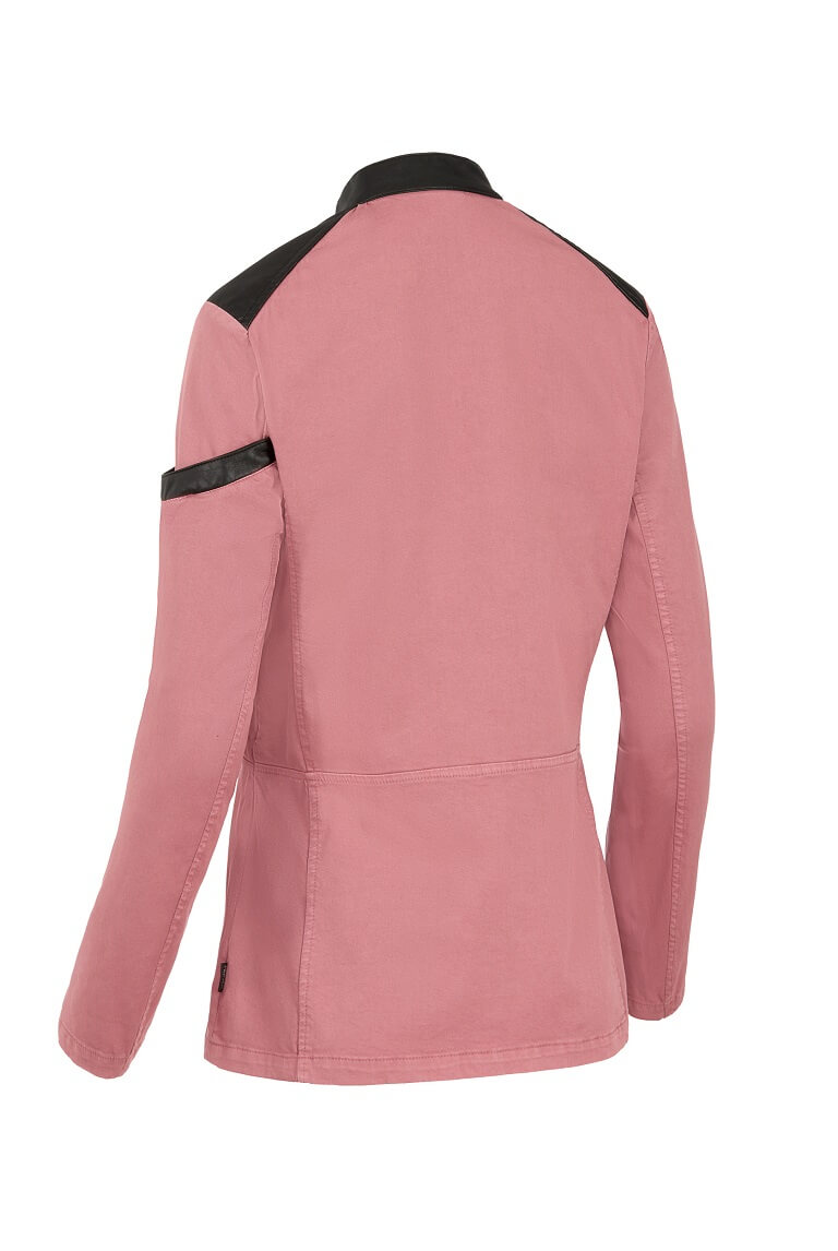 Elementos como el cierre con correas, los detalles en los hombros en polipiel y un proceso de tinte en prenda realzan el diseño de esta chaquetilla concebida para transmitir una imagen de liderazgo. Sin perder de vista la funcionalidad y comodidad, integrando tejido de malla transpirable en los costados para mayor confort.