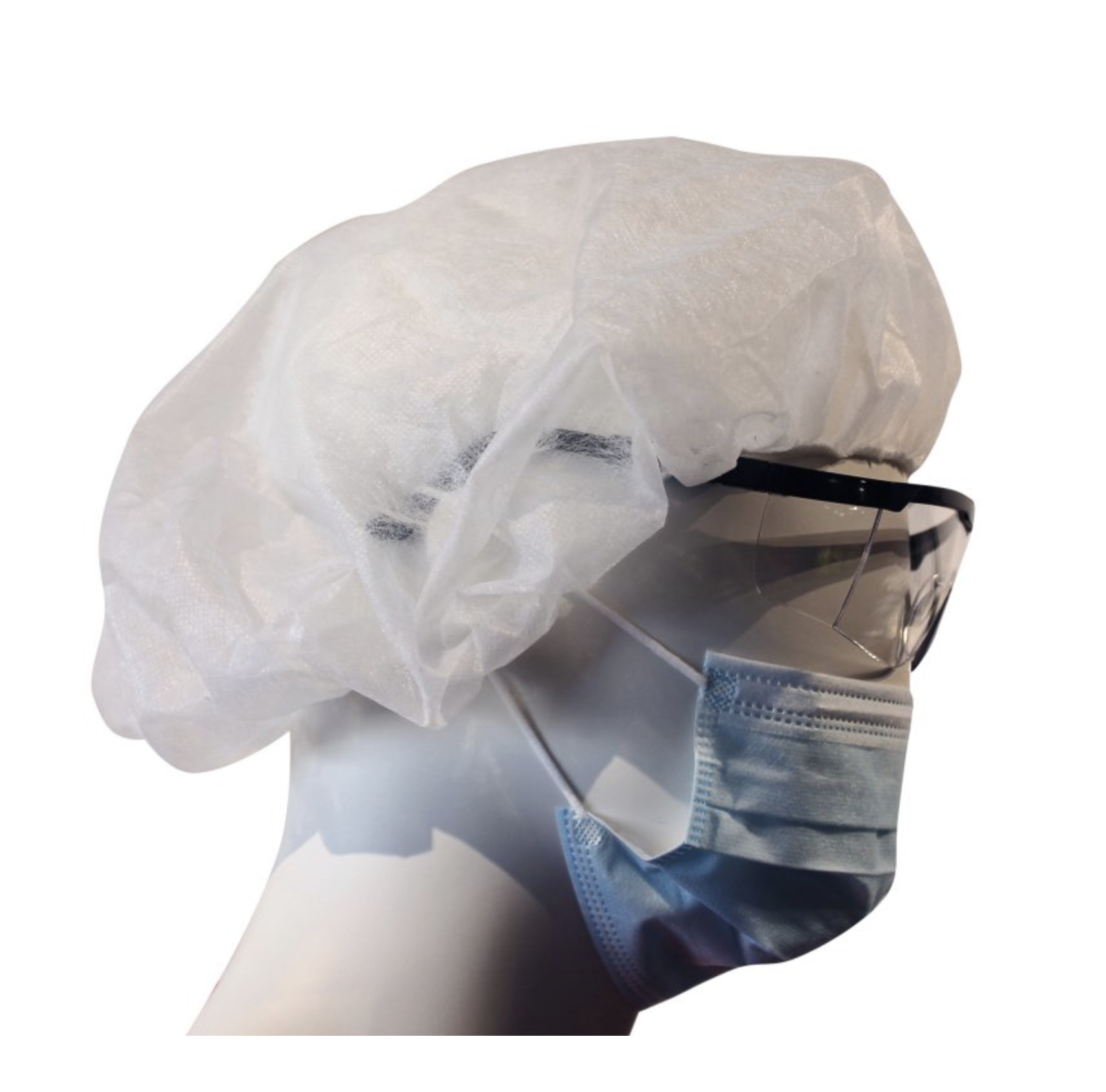 Cofia desechable de «tejido no tejido» con borde elástico. Caja de 1000 unidades envasadas en bolsas de 100 unidades.