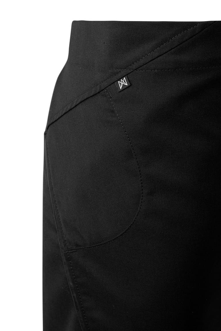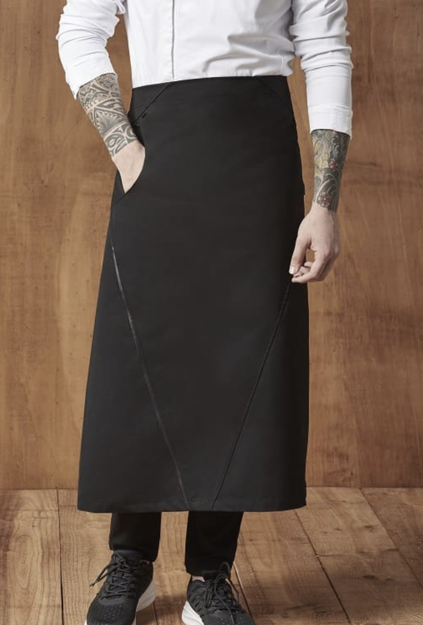 Todo al negro, con detalles en polipiel para añadir un toque sutil a este delantal francés. Cerrado con hebilla y con un bolso de fácil acceso en el lateral.