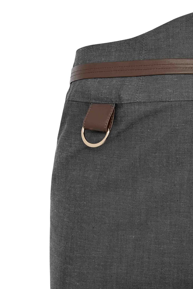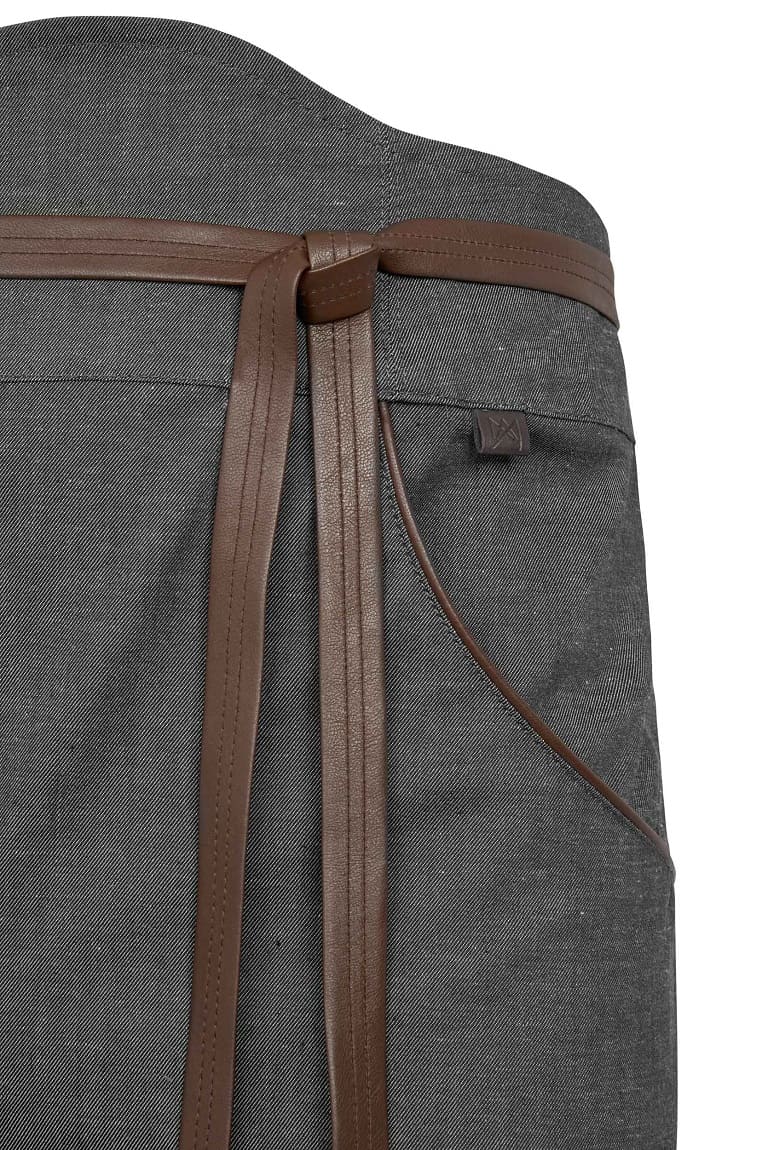 Los detalles en polipiel que elevan el diseño de la pieza. La forma ascendente de la cintura permite un ajuste perfecto.