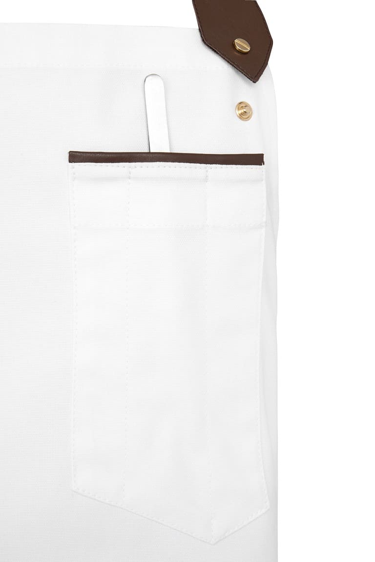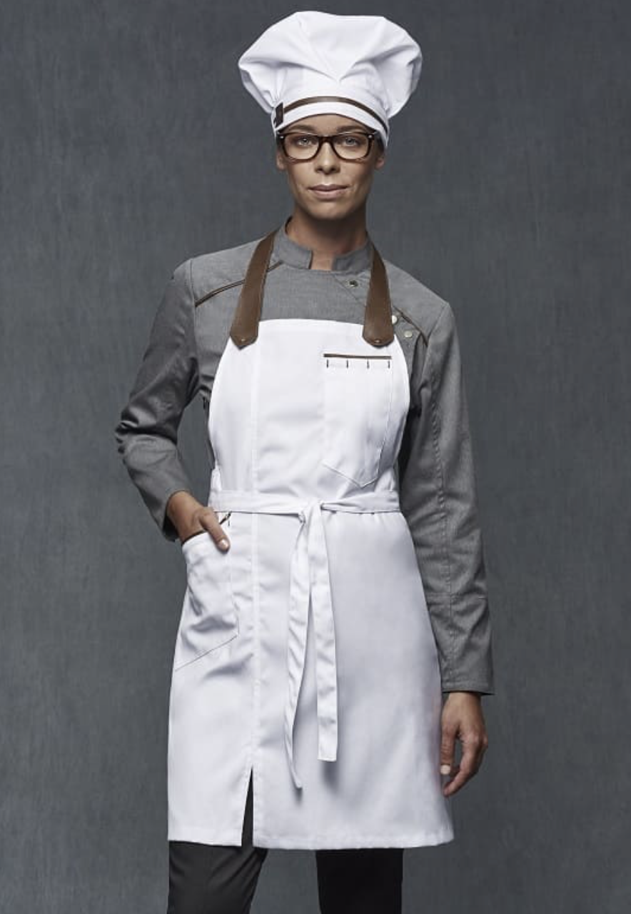 En color blanco clásico, con detalles en polipiel que elevan el diseño de la pieza. La cinta en polipiel ajustable mediante corchetes, para adaptar la media al profesional y poder quitar durante el lavado.