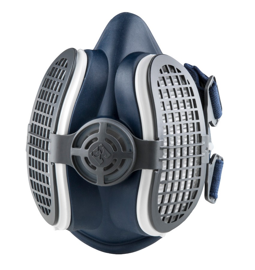 Características de seguridad: Gran válvula de exhalación de no-retorno para reducir el riesgo por fatiga del usuario. Diseño compacto, ligero y perfilado para ofrecer un amplio campo de visión. Banda de ajuste a cabeza elástica y ligera para asegurar confort y ajuste durante el uso.