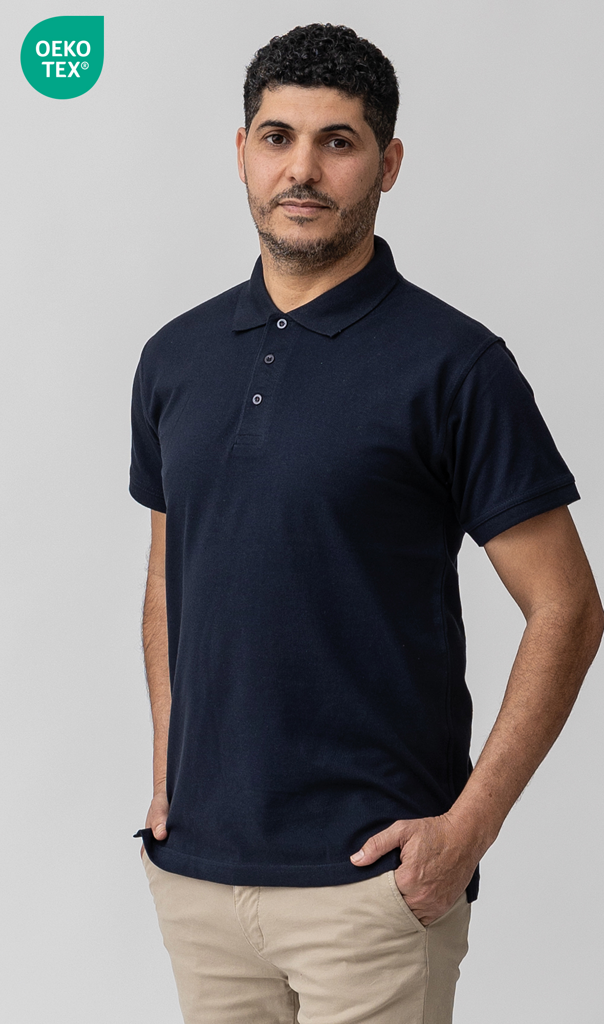 65% poliéster 35% algodón, 200 gr, tejido piqué Doble costura en hombros, mangas y bajos Cuello y bocamangas de tricotosa Lavar a una temperatura de máximo 60ºC Incluye bolsillo para coser