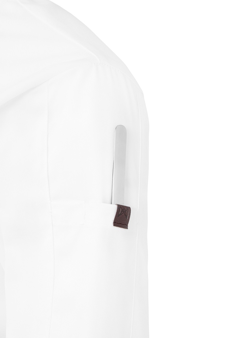 El elemento que hace de esta chaquetilla una pieza única es sin duda el cierre con cremallera. Una cremallera YKK de espiga dorada, con doble cursor para permitir una mayor amplitud en la cadera.