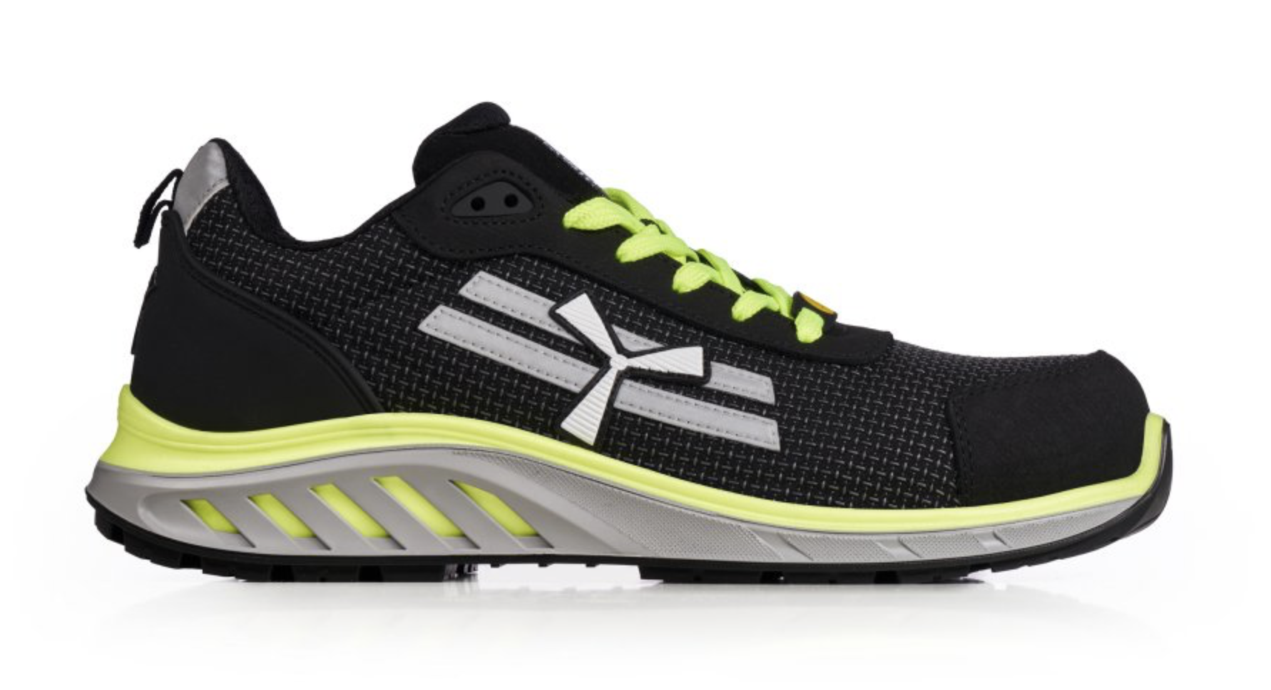 Calzado de seguridad, con pala de PU Tek resistente a la abrasión y repelente al agua. Forro interior transpirable y resistente a la abrasión. Protector de talón de TPU reforzado y protección antiabrasión en la punta. Puntera de fibra de vidrio, más ligera y resistente. Lámina antiperforación ultraligera. Plantilla ortopédica extraíble Pulsar Cushioning en PU de doble densidad y sistema de celdas abiertas, ergonómica, antiestática y amortiguadora. Entresuela realizada con mezcla de PU ultraligero de doble densidad. La primera entresuela proporciona amortiguación y confort duradero, la segunda entresuela garantiza estabilidad y sujeción. Suela exterior de TPU ultrarresistente a la hidrólisis y al desgaste. Calzado de seguridad ESD.