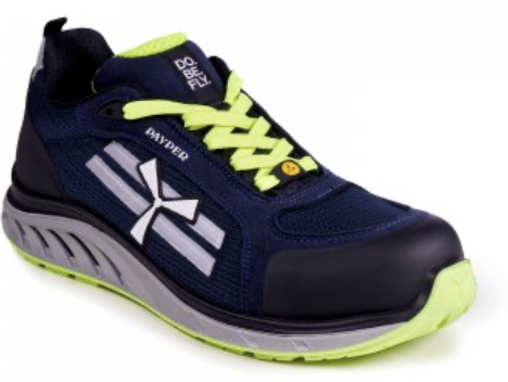 Zapatos de seguridad, con pala de tejido de malla de trama abierta, ultratranspirable. Forro interior transpirable y resistente a la abrasión. Protector de talón de TPU reforzado y protección antiabrasión en la punta. Puntera de fibra de vidrio, más ligera y resistente. Lámina antiperforación ultraligera. Plantilla ortopédica extraíble Pulsar Cushioning en PU de doble densidad y sistema de celdas abiertas, ergonómica, antiestática y amortiguadora. Entresuela realizada con mezcla de PU ultraligero de doble densidad. La primera entresuela proporciona amortiguación y confort duradero, la segunda entresuela garantiza estabilidad y sujeción. Suela exterior de TPU ultrarresistente a la hidrólisis y al desgaste. Calzado de seguridad ESD.