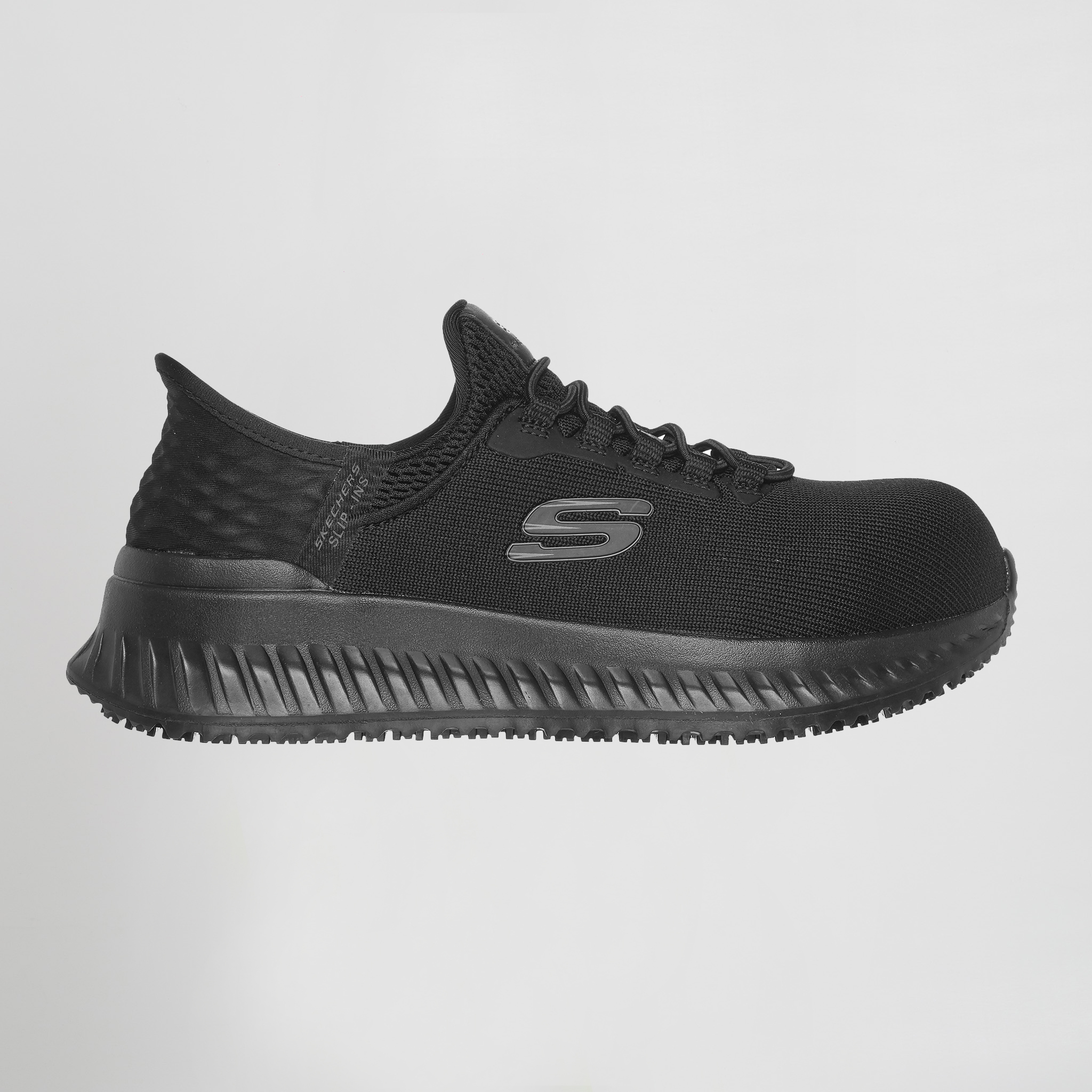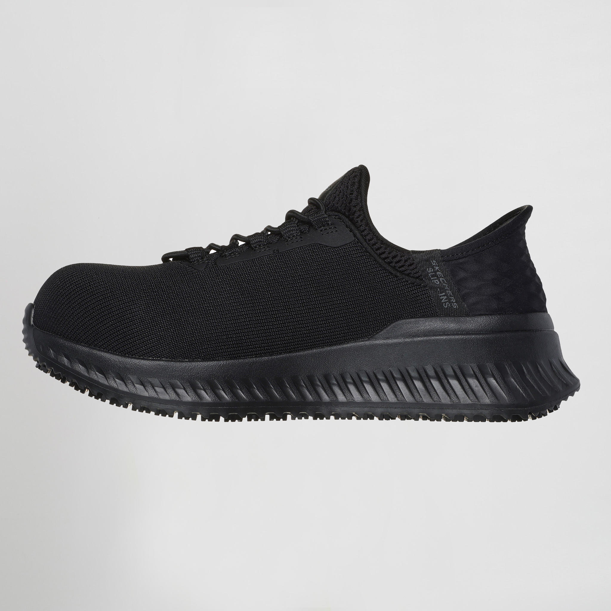 Lleva tu mejor look al trabajo con comodidad, confort y seguridad llevando los Slip-ins® Skechers Hands Free Work™: Tilido – Om-bray. Este diseño slip-on de trabajo cuenta con una malla y parte superior sintética con un cordón elástico, un panel de talón moldeado Skechers Slip-ins®, nuestro exclusivo Heel Pillow™, puntera de seguridad de composite, y una plantilla acolchada Skechers Air-Cooled Memory Foam®.